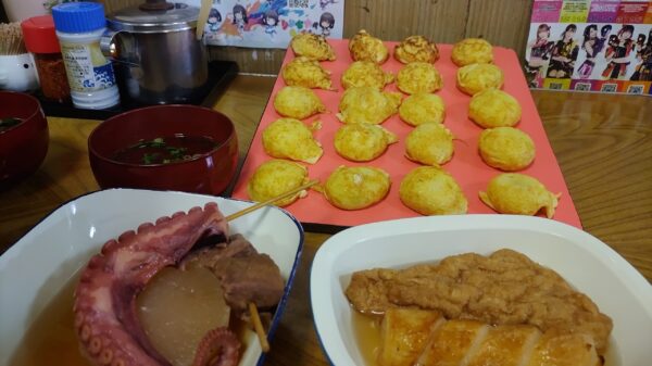 揚げ物やせんべいを食べ歩いた後、明石焼きのお店へ。